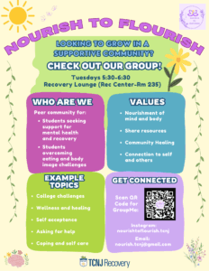 Schedule a session with a Certified Peer Recovery Specialist (CPRS), also known as a Recovery Coach! These trained students and staff members will “meet you where you are at” in your recovery journey and provide personal experience, feedback, and encouragement to help you make and meet self-directed goals. Please reach out to Eric Van Eck at vaneck3@tcnj.edu to learn more.